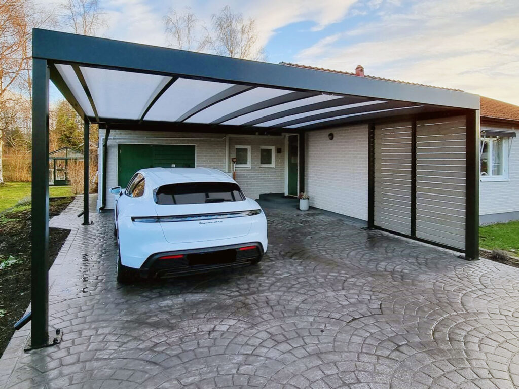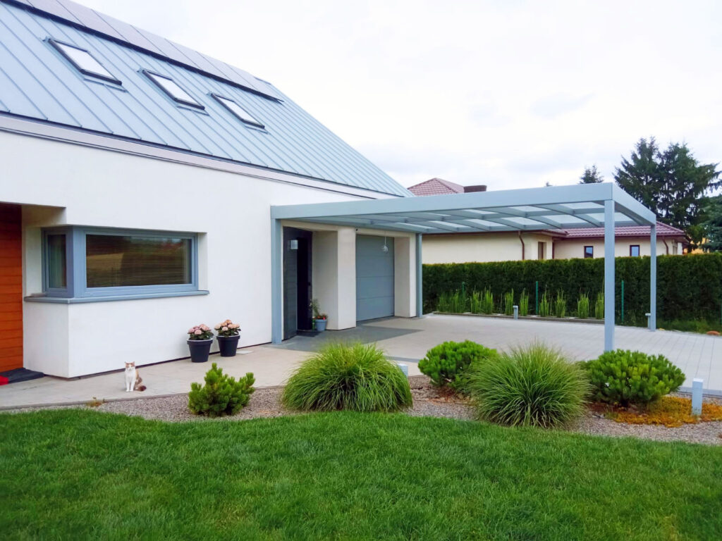 We adjust the size and shape of the carport to the existing architecture. This helps maintain stylistic consistency. The use of the highest quality materials and protections effectively protects against extreme temperatures and moisture. The structure of the carport is made of steel beams. We have several types of roofing to choose from. Depending on the shape of the roof, we use polycarbonate, trapezoidal sheet or glass. Our consultants help in choosing optimal solutions. We try to efficiently combine quality parameters and economic aspects. We treat each carport order individually. As a manufacturer of carports, we provide great flexibility in the choice of materials and the design of the entire structure. We care about short lead times and professional assembly.