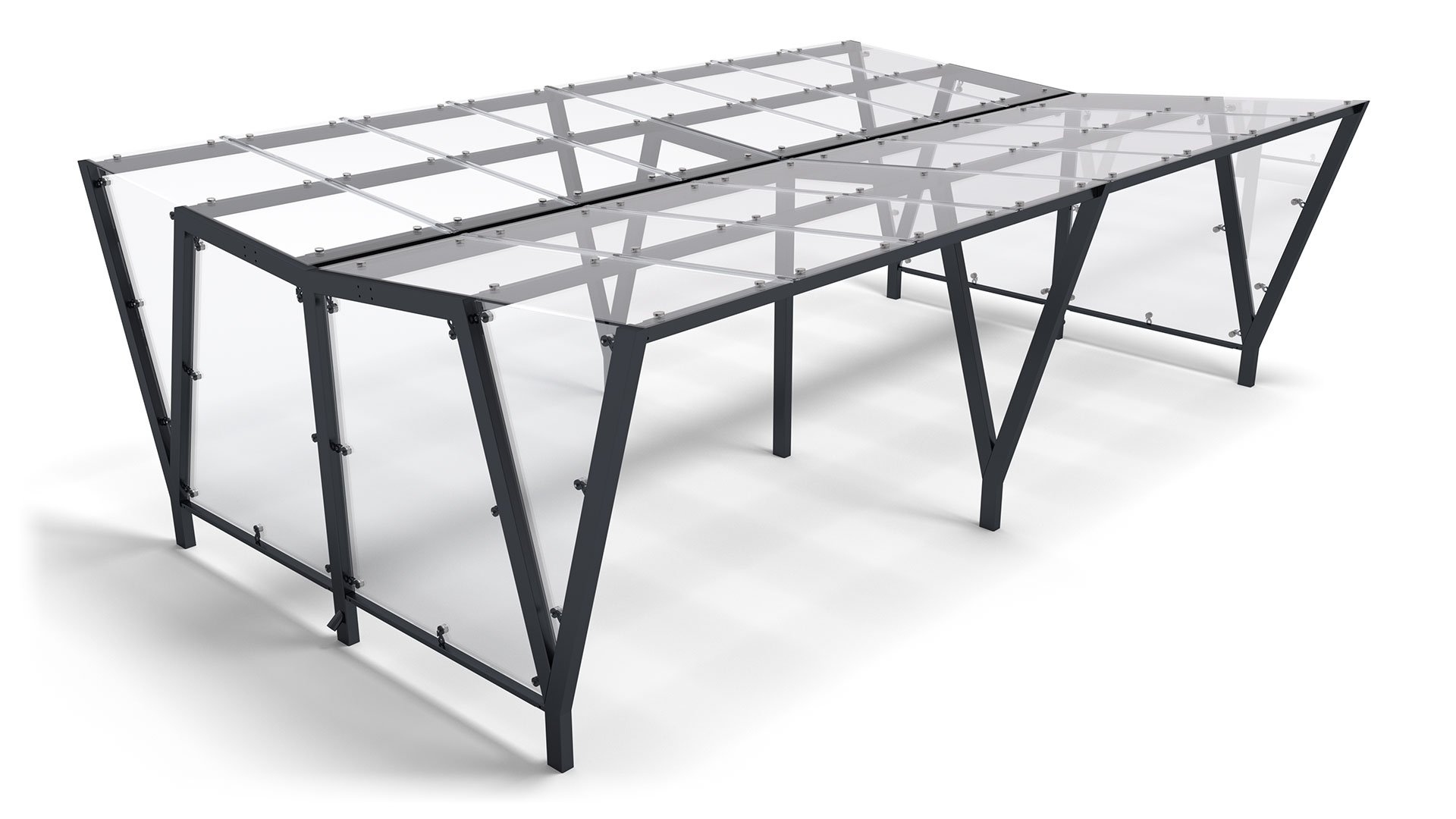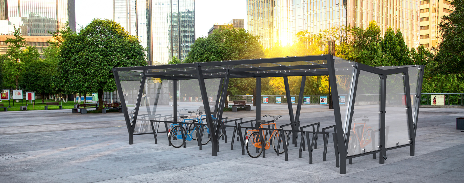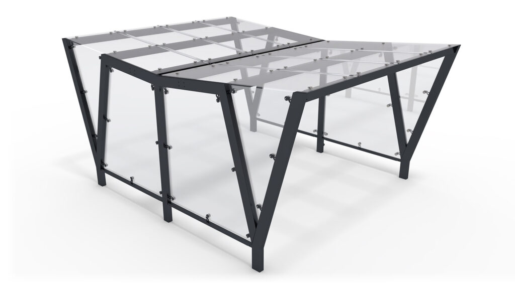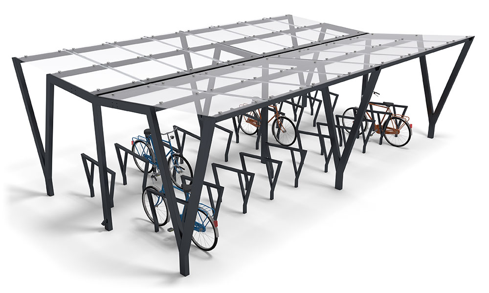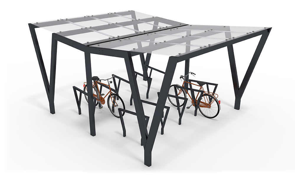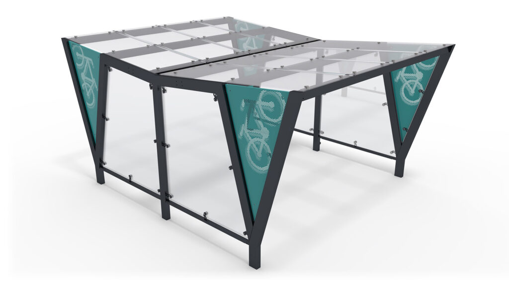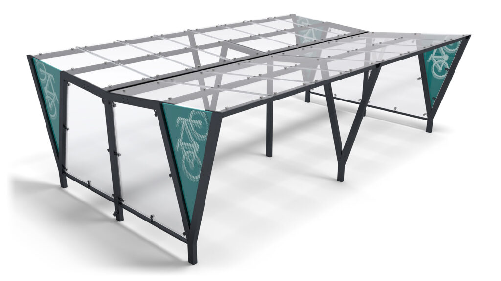 PAM_D_GL – nowoczesna dwustronna wiata rowerowa ze szklanym dachem