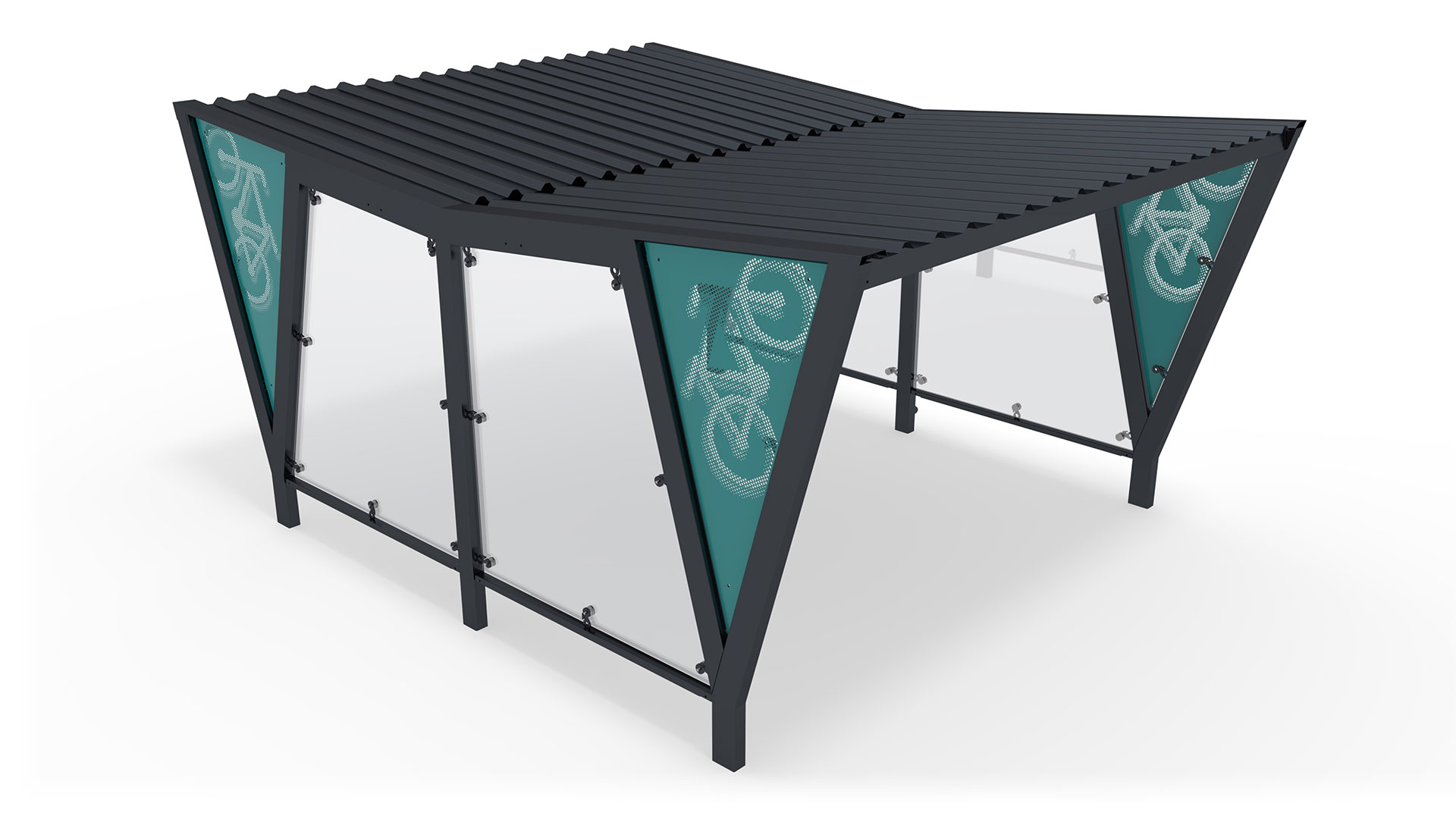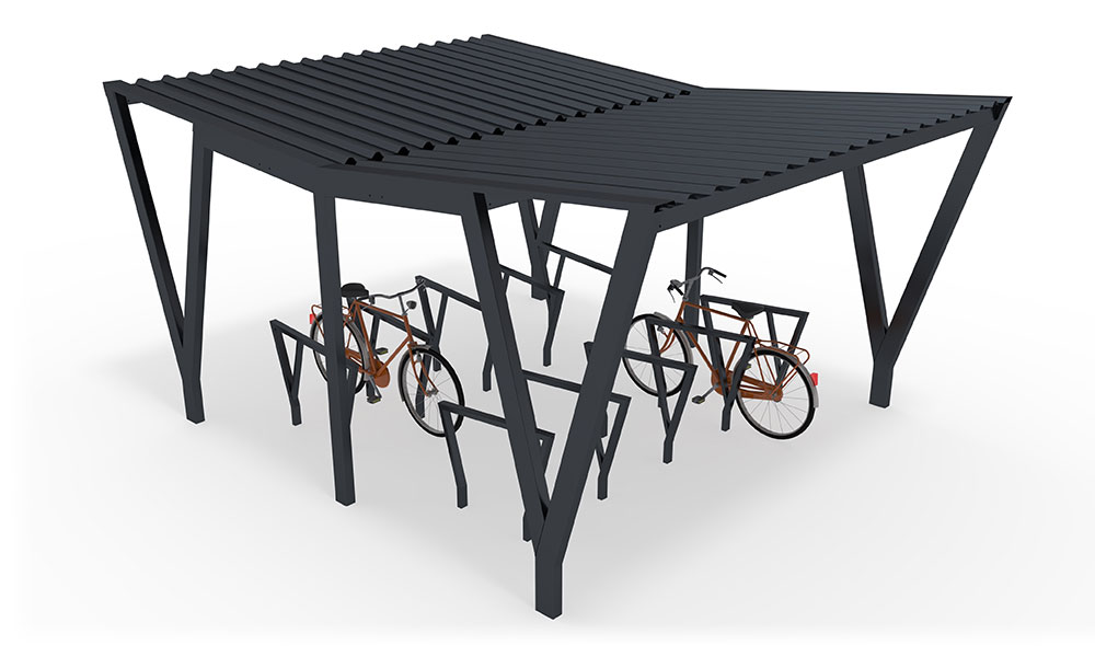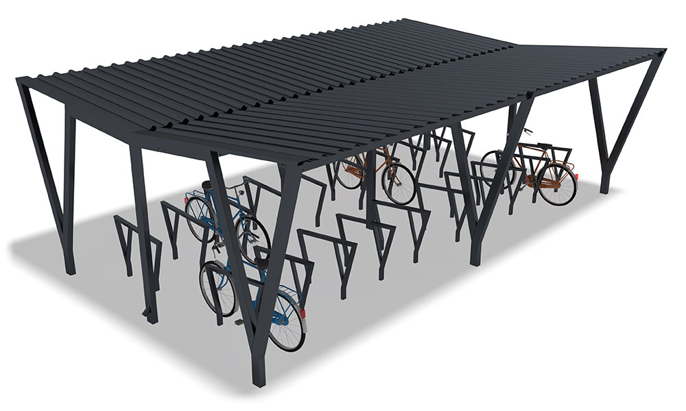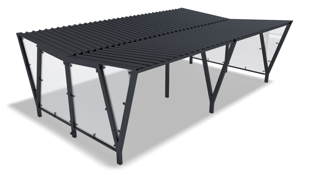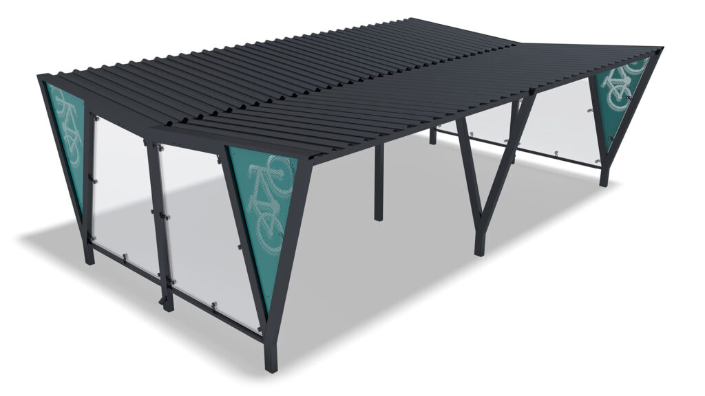 PAM_D_TR – nowoczesna dwustronna wiata rowerowa kryta blachą trapezową