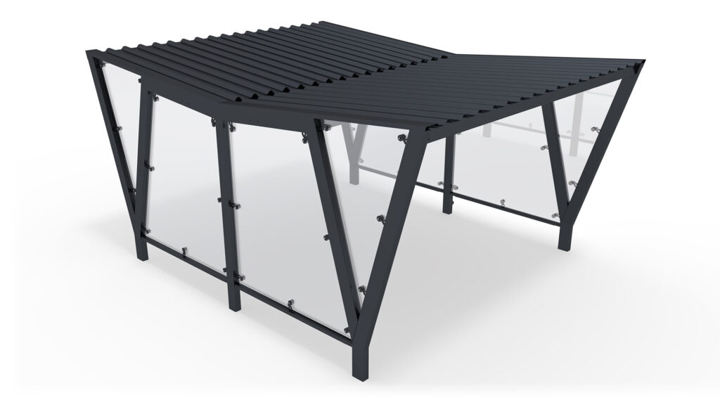 Na życzenie Zamawiającego, wiata PAM_D (w wersji GL oraz TR) może być wyposażona w zabudowę ścian bocznych, co dodatkowo zwiększa jej funkcjonalność.