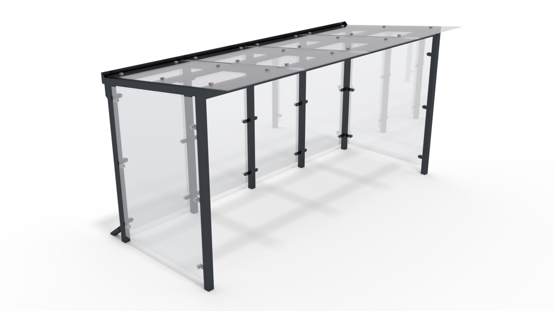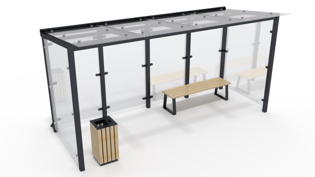 W zależności od potrzeb Zamawiającego, wiata PORTO_S_P może być wyposażona w zabudowę ścian bocznych, ściany tylnej lub obu tych elementów jednocześnie.