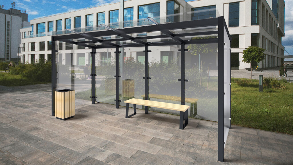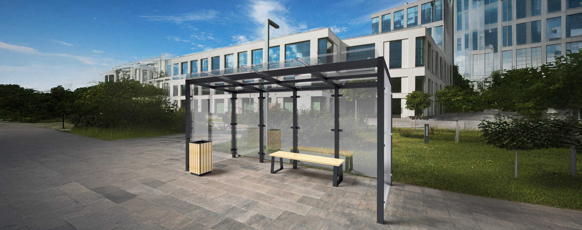 Wiata PORTO_S_P to nowoczesne i eleganckie rozwiązanie, które łączy stal z wysokiej jakości szkłem. Przeszklony dach nadaje jej lekkości, a designerski wygląd sprawia, że staje się atrakcyjnym elementem każdego otoczenia. W opcji dostępna jest zabudowa boków oraz tyłu, wykonana ze szkła.